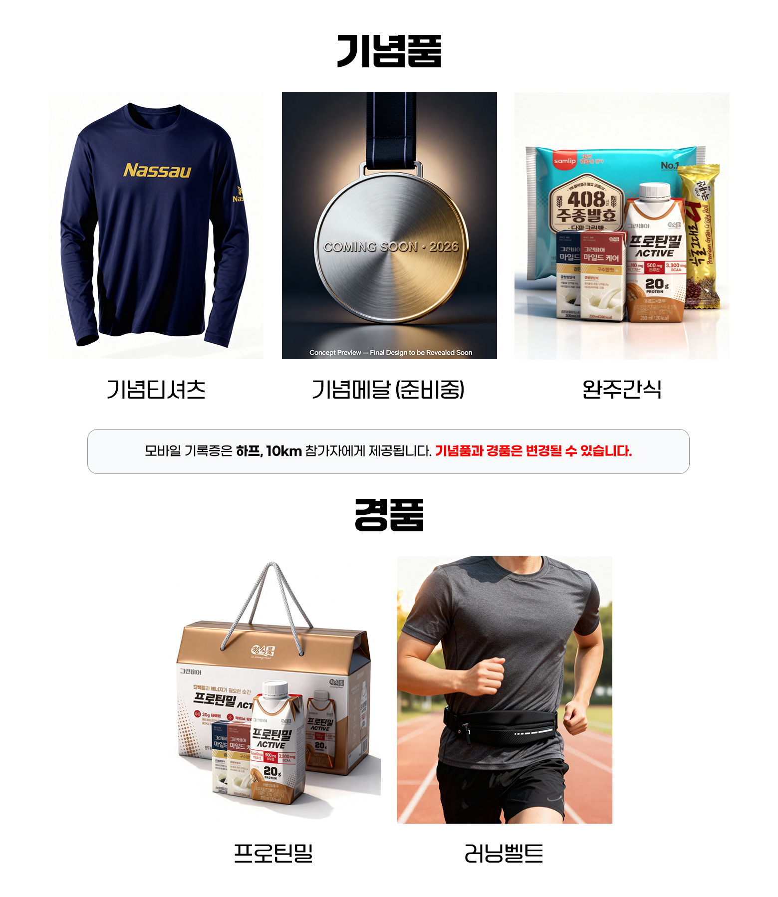 [ 기념티셔츠, 완주메달, 기록증, 간식(빵,음료수) ]